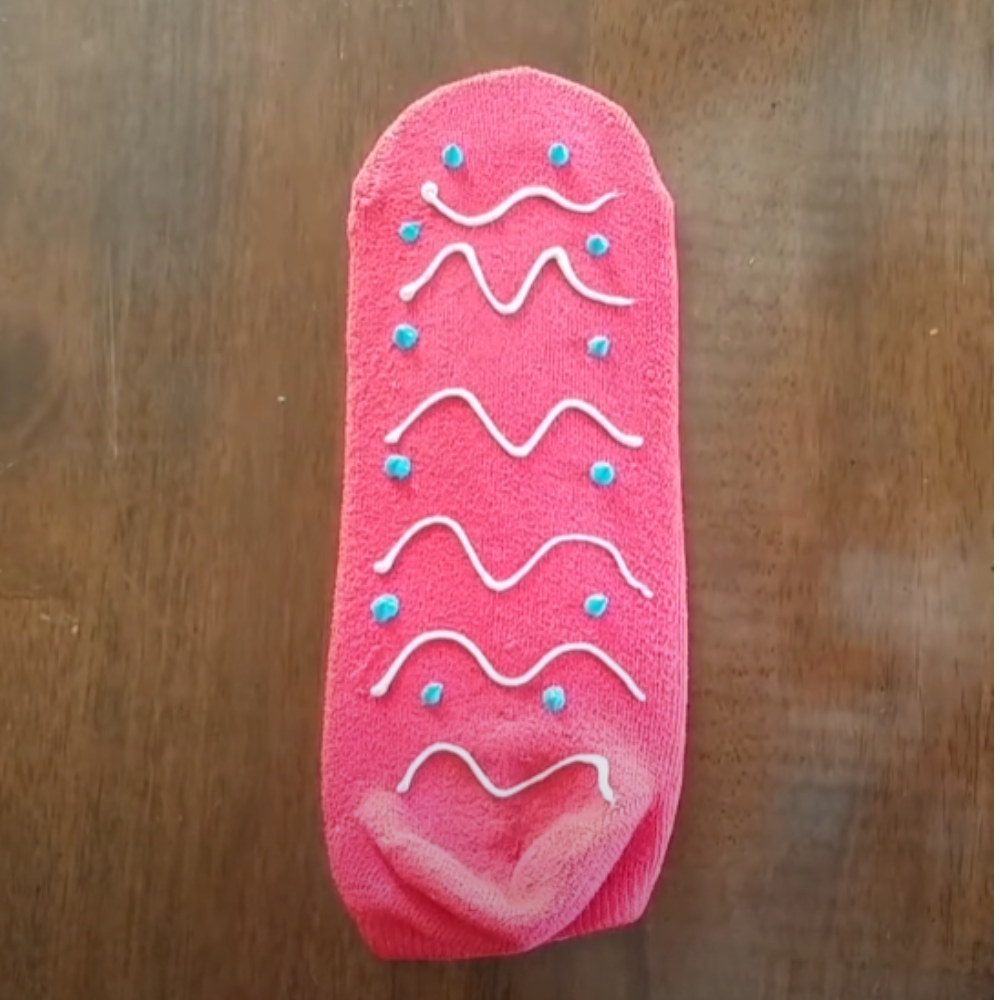 Klej jest wytrzymały, a wzorki trzymają się nawet po kilku praniach. Fajna alternatywa dla gotowych antypoślizgowych skarpet.